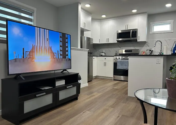 这家埃德蒙顿市公寓距离Pure Wellness Studio有3.7公里,距离The Painted Door on Main有6公里。 公寓附近有著名的Allstars Indoor Playland。